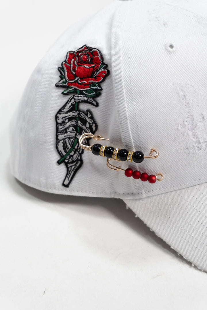 Questo cappello è un modello custom realizzato artigianalmente, impreziosito da dettagli applicati a mano che lo rendono un pezzo unico nel suo genere. Ogni elemento è studiato per dare stile e personalità, trasformando un accessorio classico in un vero capo esclusivo.