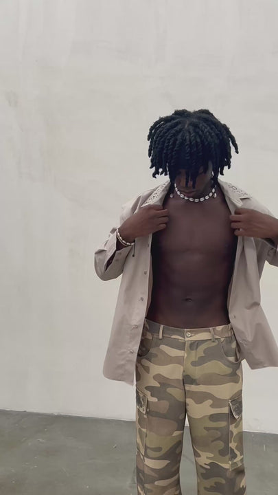Camicia a maniche lunghe dal taglio regular, caratterizzata da un design minimal arricchito da un colletto decorato con occhielli metallici. Realizzata in tessuto leggero e confortevole, unisce linee pulite e dettagli audaci, per uno stile che si muove tra il classico e lo streetwear contemporaneo.